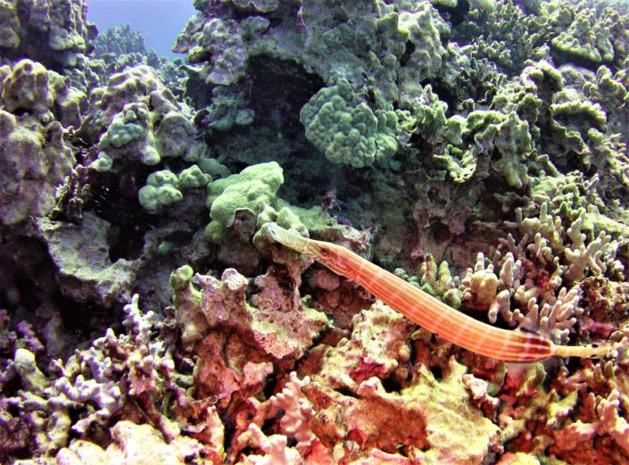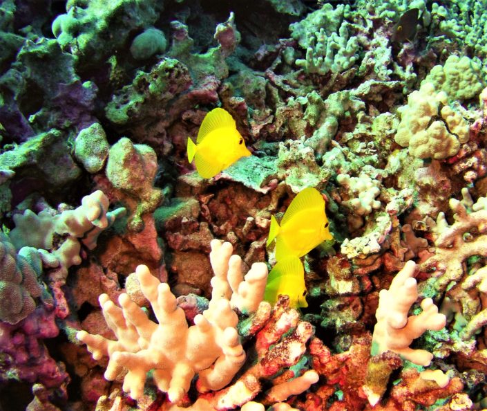In my two recent trips to the Big Island, I spent twenty days diving with Kohala Divers. Crystal clear blue water reveals beautiful finger coral, along with a huge variety of fish and invertebrates, green sea turtles, white-tip reef sharks, manta and eagle rays, Hawaiian spinner dolphins, humpback whales, the endangered Hawaiian monk seal, and more.